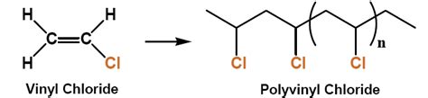 Vinyl chloride is made solely of three elements: Carbon, hydrogen and chlorine. In its simplest form, it looks like this (the monomer, liquid form is on the left, and the solid poly form is on the right):